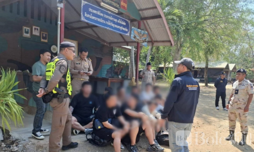 Bole新闻专讯:泰国中央调查局(CIB)近日联合高速公路警察部门开展执法行动,由高速公路警察第四分局第三中队(尖竹汶—达叻)负责执行。执法人员在巡逻过程中,于尖竹汶府蓬南隆县空格来镇班帕威莱村一处龙眼园内发现10名形迹可疑的男子,遂上前检查并实施抓捕。