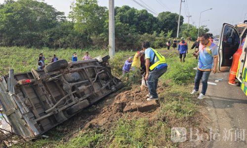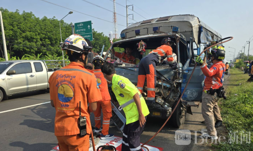 Bole新闻专讯:泰国武里南府3月19日发生一起校外活动交通事故,一辆载有幼儿园至小学六年级学生及家长约100人的6轮客车,在前往参观途中追尾一辆皮卡车,造成多人受伤,所幸学生均未受伤。