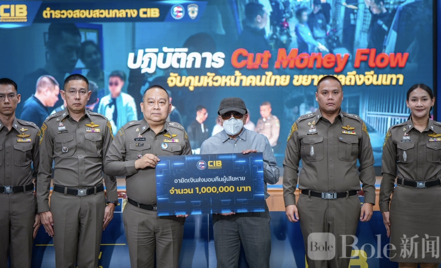 Bole新闻专讯:泰国警方科技犯罪调查部门联合中央调查局近日开展代号“Cut Money Flow(断钱流)”专项行动,成功打击一跨国电信诈骗团伙,共抓获9名嫌疑人,并在行动中追回并返还受害者100万泰铢赃款。
