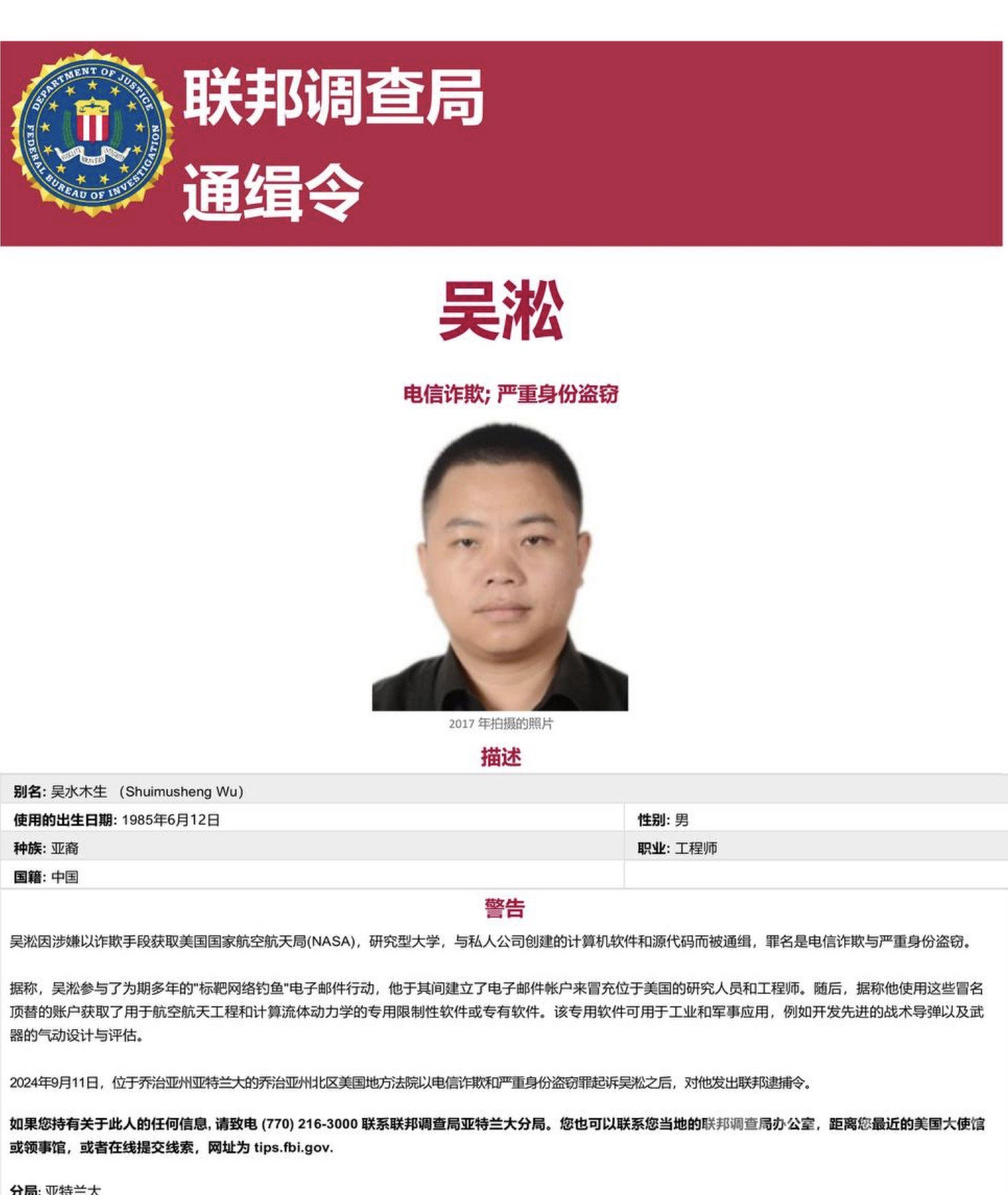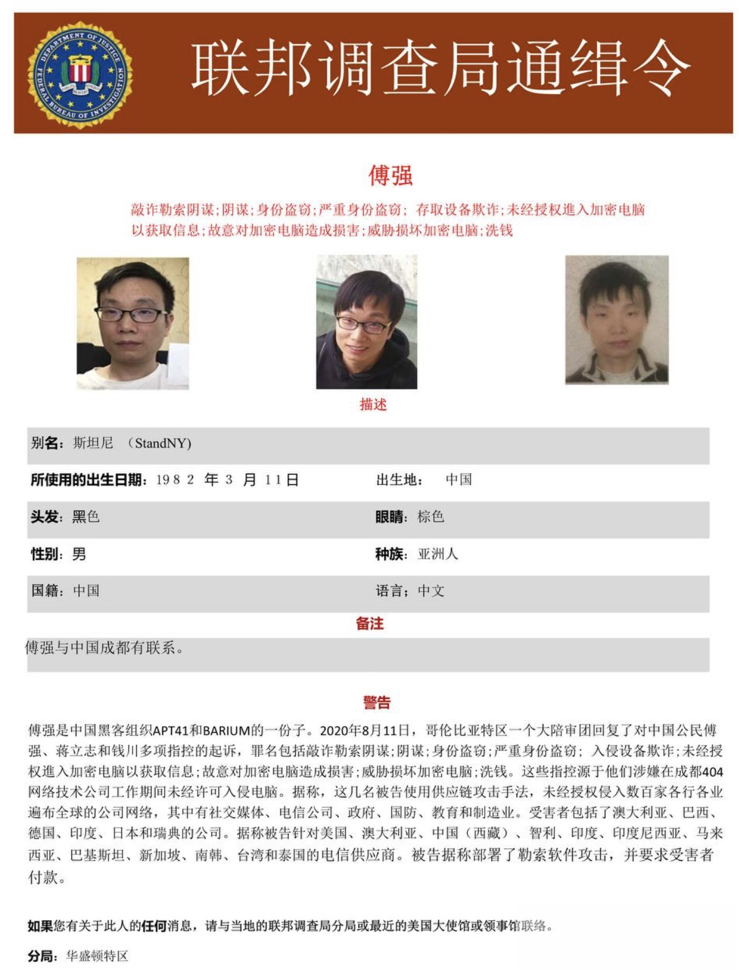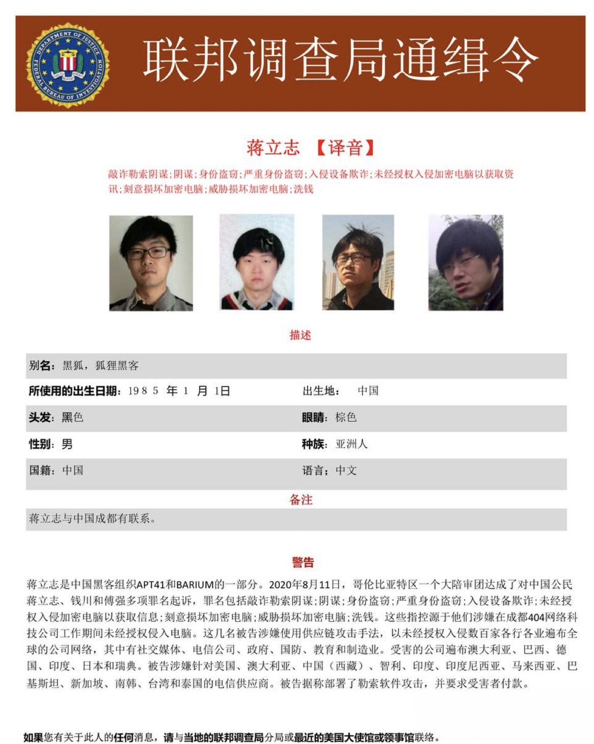 Bole新闻专讯:美国联邦调查局(FBI)近日向全球发布通缉令,锁定一批涉嫌跨国电信诈骗的中国籍犯罪嫌疑人。此次行动由FBI牵头,并联合泰国警方展开,针对诈骗团伙的活动网络进行精准打击。