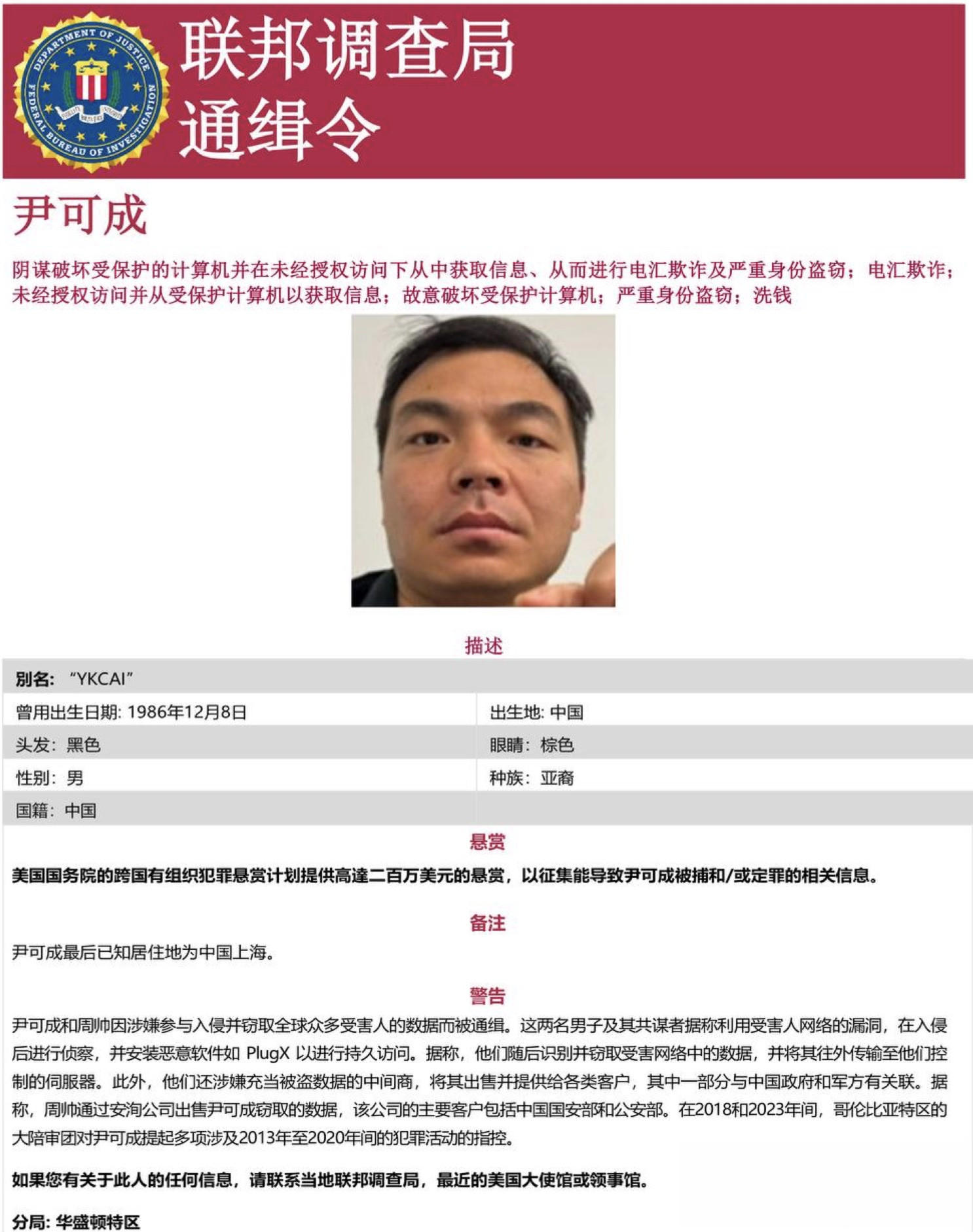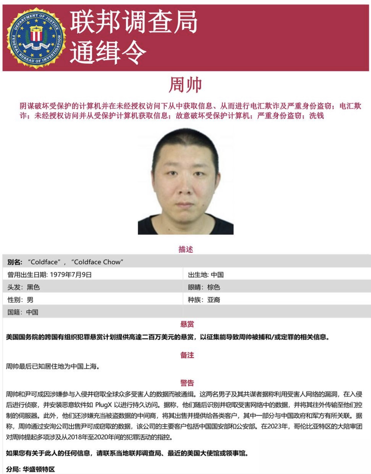 FBI全球通缉中国诈骗犯,5.8亿美元加密资产被冻结