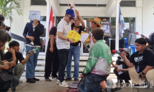 Bole新闻专讯: 3月23日,泰国首都政府大楼迎来一场非同寻常的民间行动,由14个社会组织组成的联盟在公民领袖带领下,向总理兼内政部长阿努廷递交请愿书,敦促政府立即采取措施应对能源危机,降低油价、稳定液化气价格,并控制电费及生活必需品价格。现场拉起标语横幅,气氛紧张而庄重。