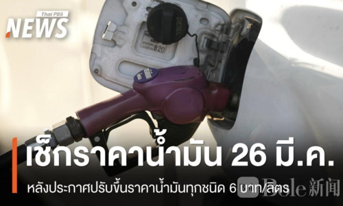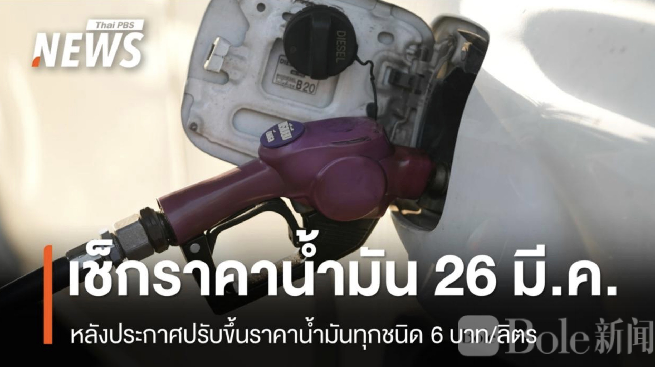 Bole新闻专讯:3月26日,泰国国家燃油价格控制委员会(NFPC)宣布,自凌晨5点起,全国所有类型燃油价格每升上调6泰铢。此轮涨价主要受中东局势紧张及国际油价飙升影响,新加坡柴油价格已从每桶198.20美元飙升至242.91美元。与此同时,燃油基金管理委员会(FFMC)同步下调补贴额度,使国内油价整体“水涨船高”。