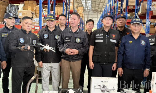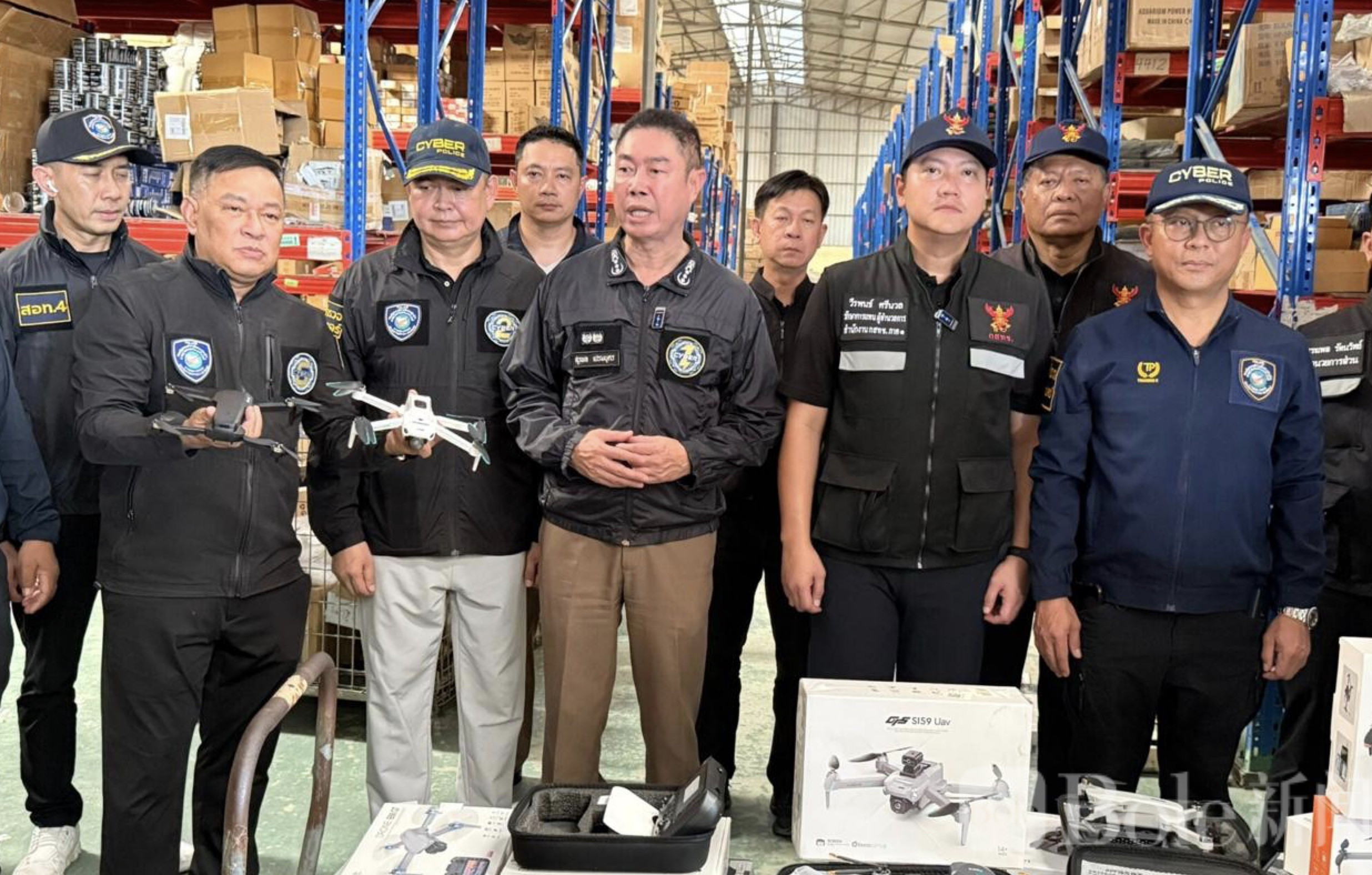 Bole新闻专讯:曼谷警方近日上演了一场高调突袭行动,锁定位于拉卡邦的两处仓库,一举查获2500多架非法进口无人机,总价值超过500万泰铢。此次行动由网络犯罪调查局(CCIB)联合国家广播电视和电信委员会(NBTC)执行,持法院搜查令对仓库进行了彻底检查。现场堆满了从中国进口的无人机设备,全部未获官方许可。