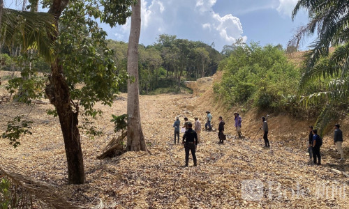 最新行动中,拉廊府自然资源与环境办公室负责人率队深入密林,对疑似木材运输路线展开排查。尽管山上已发现大量被砍伐痕迹,但运输通道极为隐蔽,初步判断不法分子仅利用一条靠近海湾的秘密路径,将木材外运至邻近府的锯木厂。
