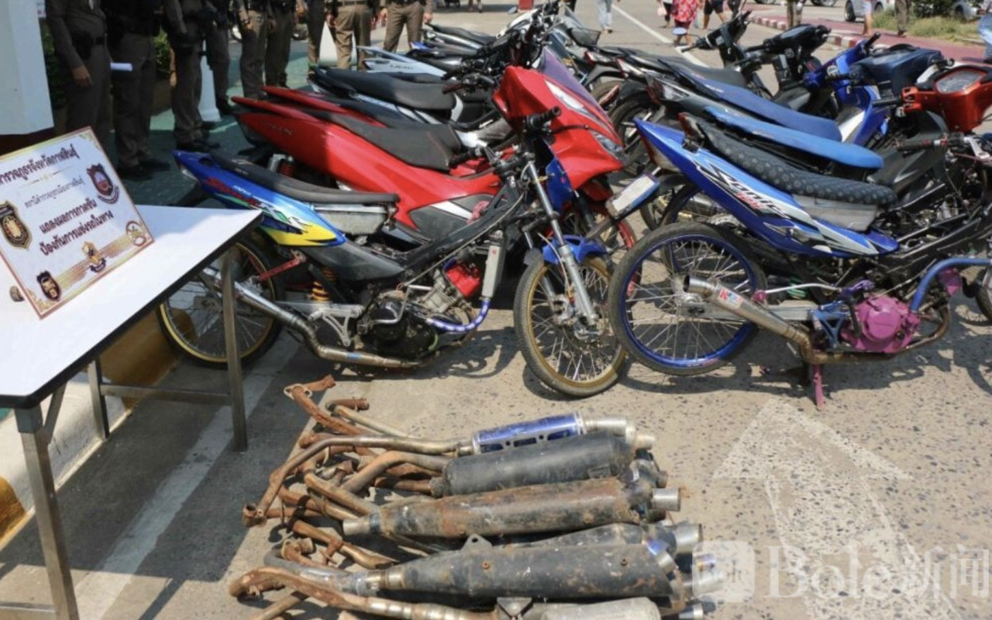 Bole新闻专讯:泰国卡拉信府警方日前公布了3月份针对噪音摩托和非法街头飙车的整治结果,共计50人被捕,50辆摩托车被扣押。此次行动由第四警察区域及卡拉信府警方联合开展,执行时间自3月1日至3月31日。