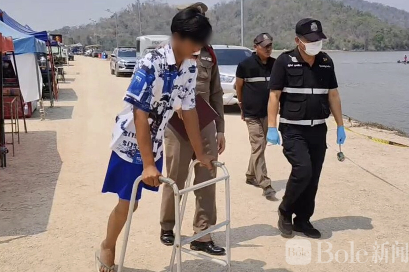 根据调查,当事人是一名22岁的青年,名叫贡基亚特。他的左腿早年因事故被截肢,只能依靠假肢行走。平日里,他靠在水库附近摆摊卖汽水、饮料维持生计,生活并不富裕,但也算踏实。