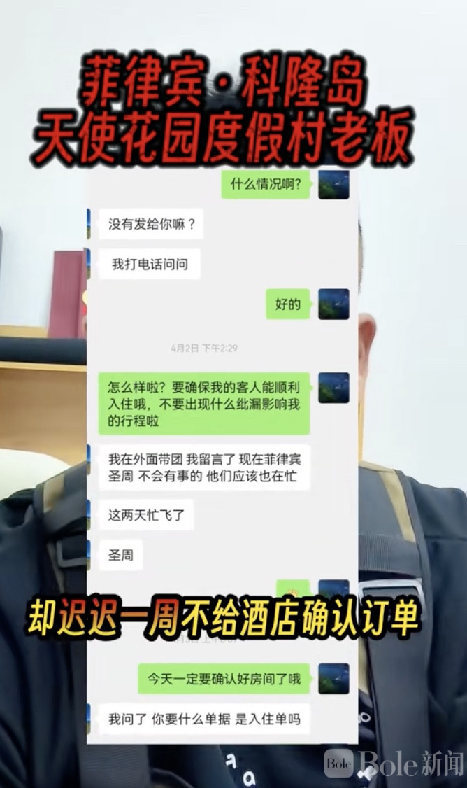当事人此前在网上处理机票预订事宜时,通过菲律宾本地旅游社群,接触到了一名自称 “菲律宾科隆岛天使花园度假村老板” 的男子。同在一个圈层,看着对方账号里日常更新的酒店运营内容、行业资源动态,一副在本地扎根多年、有头有脸的经营者模样,再加上张口闭口 “都是同胞,肯定给你安排得明明白白”,常年在海外奔波的当事人,对着这张同胞面孔,卸下了大半防备。