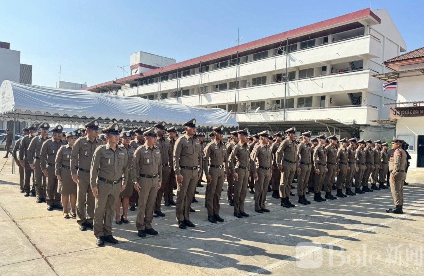 Bole新闻专讯:2026年4月9日下午,泰国国家警察总监察副总监率队前往巴吞他尼府开展督查工作,并重点跟进一起涉及8名警员涉嫌滥用职权的案件,明确表态一旦查实将依法严惩,绝不姑息。