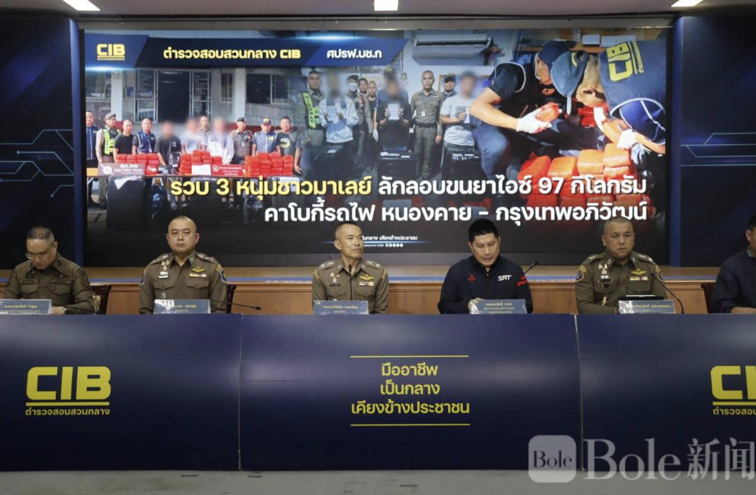 Bole新闻专讯:2026年4月10日,泰国警方联合铁路部门在一列由廊开开往曼谷的特快列车上破获一起重大毒品案件,现场查获约97公斤冰毒,并当场逮捕3名马来西亚籍男子。