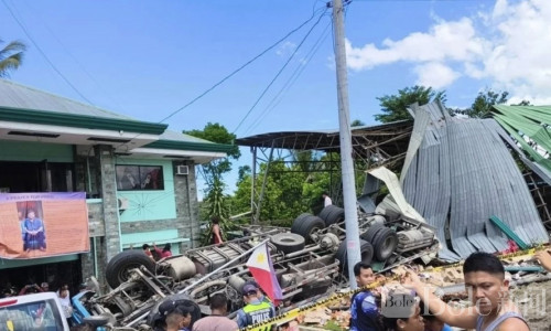 达沃市惨烈车祸:10轮货车失控撞入体育馆致4死