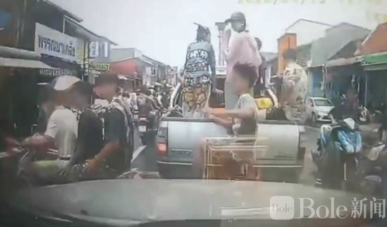 Bole新闻专讯:泰国普吉府近日一段街头冲突视频在社交平台迅速发酵,一群年轻人在宋干节期间于道路上发生激烈争执,其中一名男子下车踹车并疑似亮出手枪进行威胁,整个过程发生在人来车往的公共道路上,引发网友强烈关注与安全担忧。