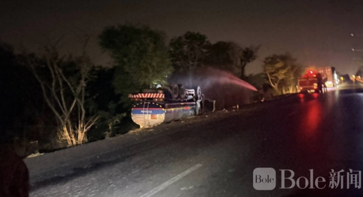 惊险!华欣旁路油罐车侧翻,16000升燃油泄漏封路