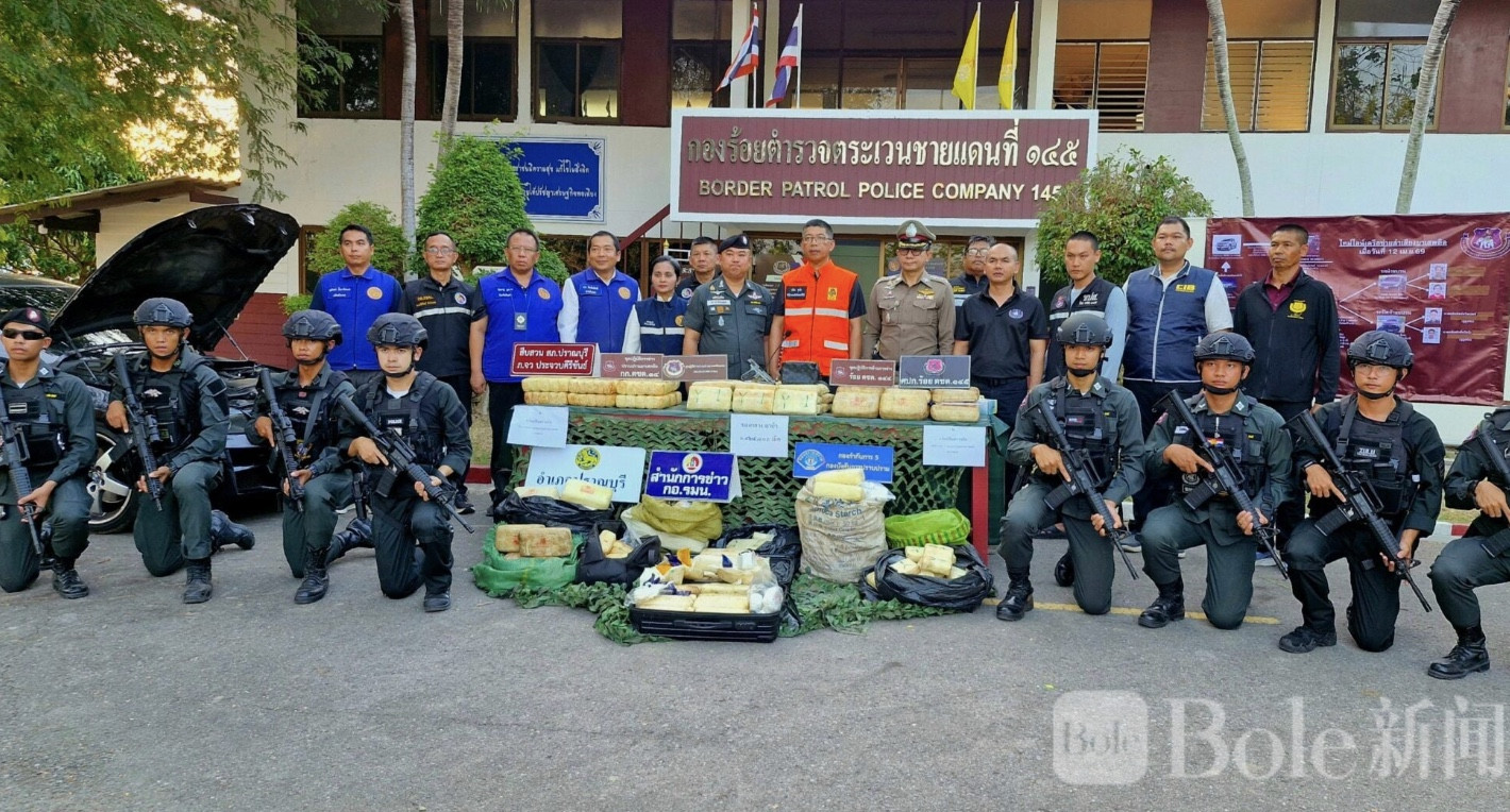 Bole新闻专讯:2026年4月13日,泰国警方在攀武里府(Prachuap Khiri Khan)差安县至华欣路段成功拦截一起跨区域大型毒品运输案件,当场查获超过140万粒冰毒,并逮捕2名主要嫌疑人,案件仍在进一步扩大调查中。