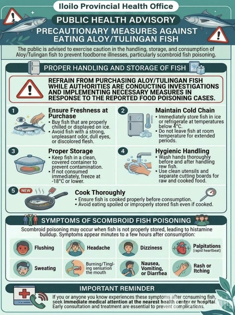 Bole新闻专讯:菲律宾伊洛伊洛省近日爆发一起大规模集体食物中毒事件,截至 4 月 14 日,已有 66 人因食用鲭鱼(当地称 tulingan 或 aloy)出现中毒症状,其中 3 人仍在医院接受治疗,其余大部分患者已经痊愈出院。