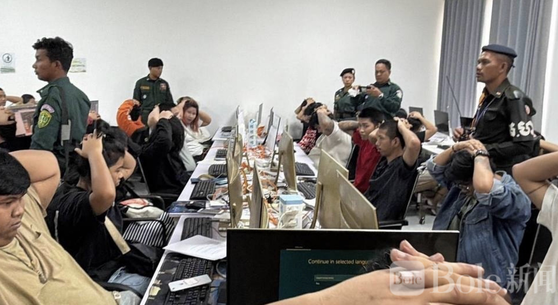 Bole新闻专讯:柬埔寨蒙多基里省警方近日在森蒙诺隆市一栋商业大楼内展开突袭行动,成功捣毁一个大型跨国电信诈骗窝点,当场控制262名外籍人员,其中包括47名女性,案件涉及中国、泰国、印度等9个国家人员。