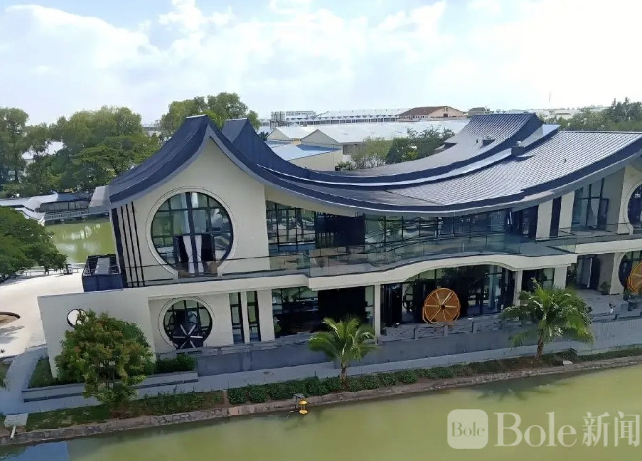 从曝光的画面来看,这处府邸占地规模不小,据称达数百亩,整体风格也挺“混搭”——高棉传统建筑、苏式园林与现代设计交织在一起。亭台、水榭、小桥、流水一应俱全,走进去的感觉,或许更像一座被封闭起来的私家园林,而不是普通意义上的住宅。