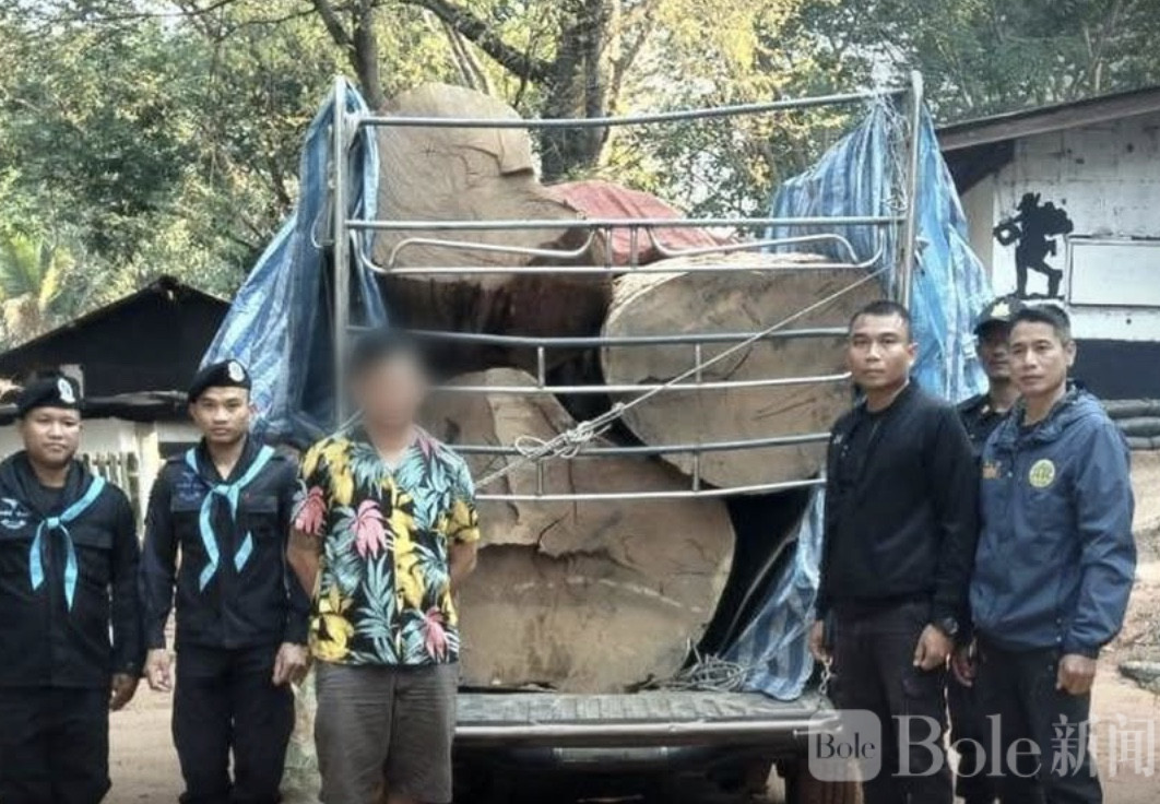 泰国边防行动破非法走私木材案,查获3段巨型紫檀