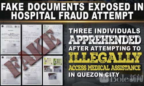 Bole新闻专讯:菲律宾奎松市基里诺纪念医疗中心近日揭发一起医疗援助诈骗未遂案件,3名嫌疑人因提交伪造文件试图非法领取政府补助,当场被警方控制。