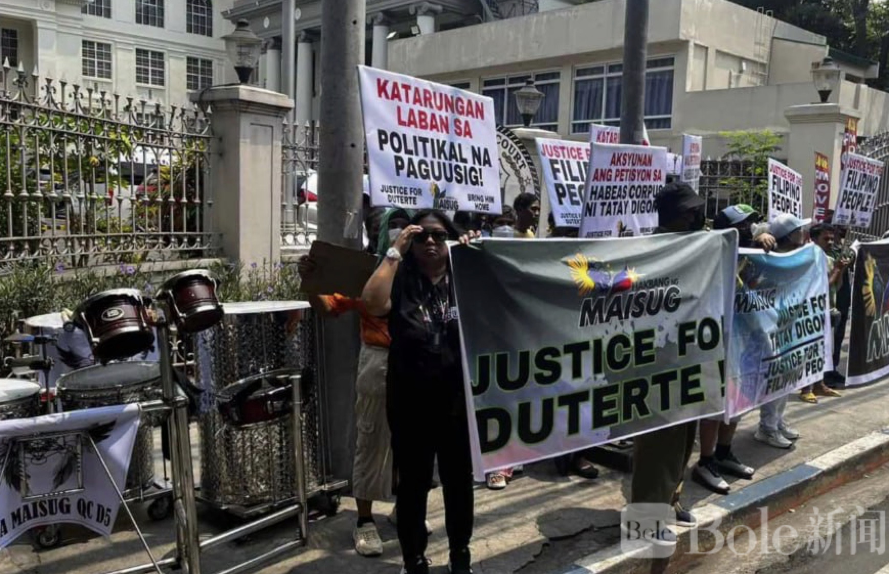 Bole新闻专讯:菲律宾首都近日爆发政治性集会,多名支持杜特尔特家族的民众聚集在最高法院外,高喊口号表达诉求,要求允许前总统罗德里戈·杜特尔特返回国内,并呼吁撤销针对现任副总统萨拉·杜特尔特的弹劾相关指控,现场气氛一度紧张。