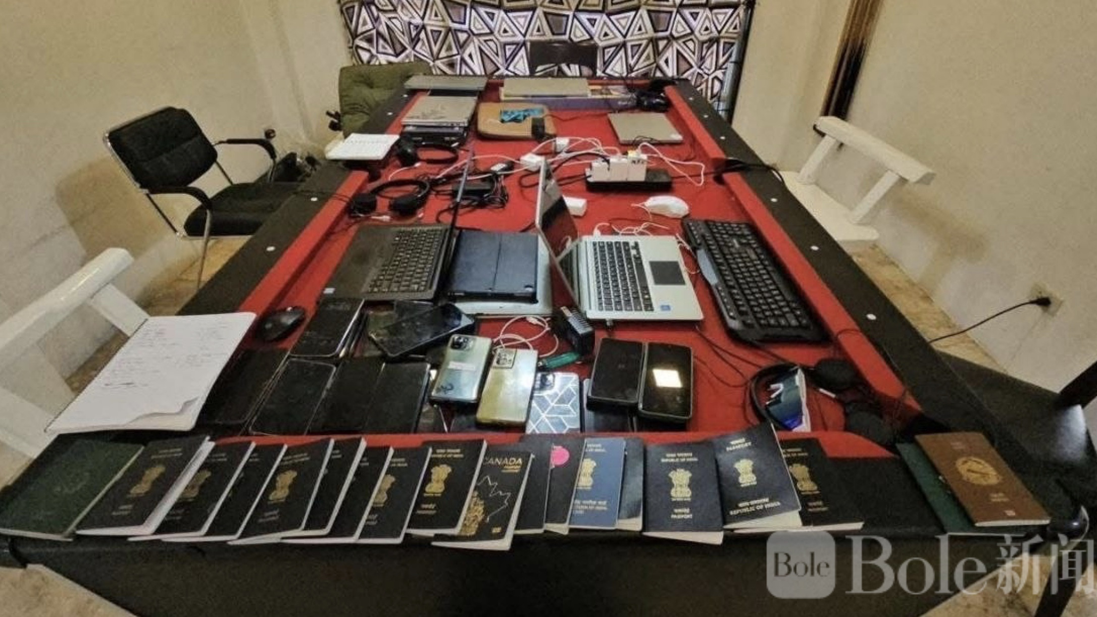 Bole新闻专讯:泰国警方近日在芭堤雅展开一次突击行动,一栋看似普通却戒备森严的豪华泳池别墅被迅速包围。随着执法人员破门而入,一个隐藏在高墙之内的诈骗窝点随即曝光——屋内二十多名印度籍男子正围着笔记本电脑和一摞摞手机忙碌操作,一个专门针对投资骗局的诈骗呼叫中心就这样被当场揭开。
