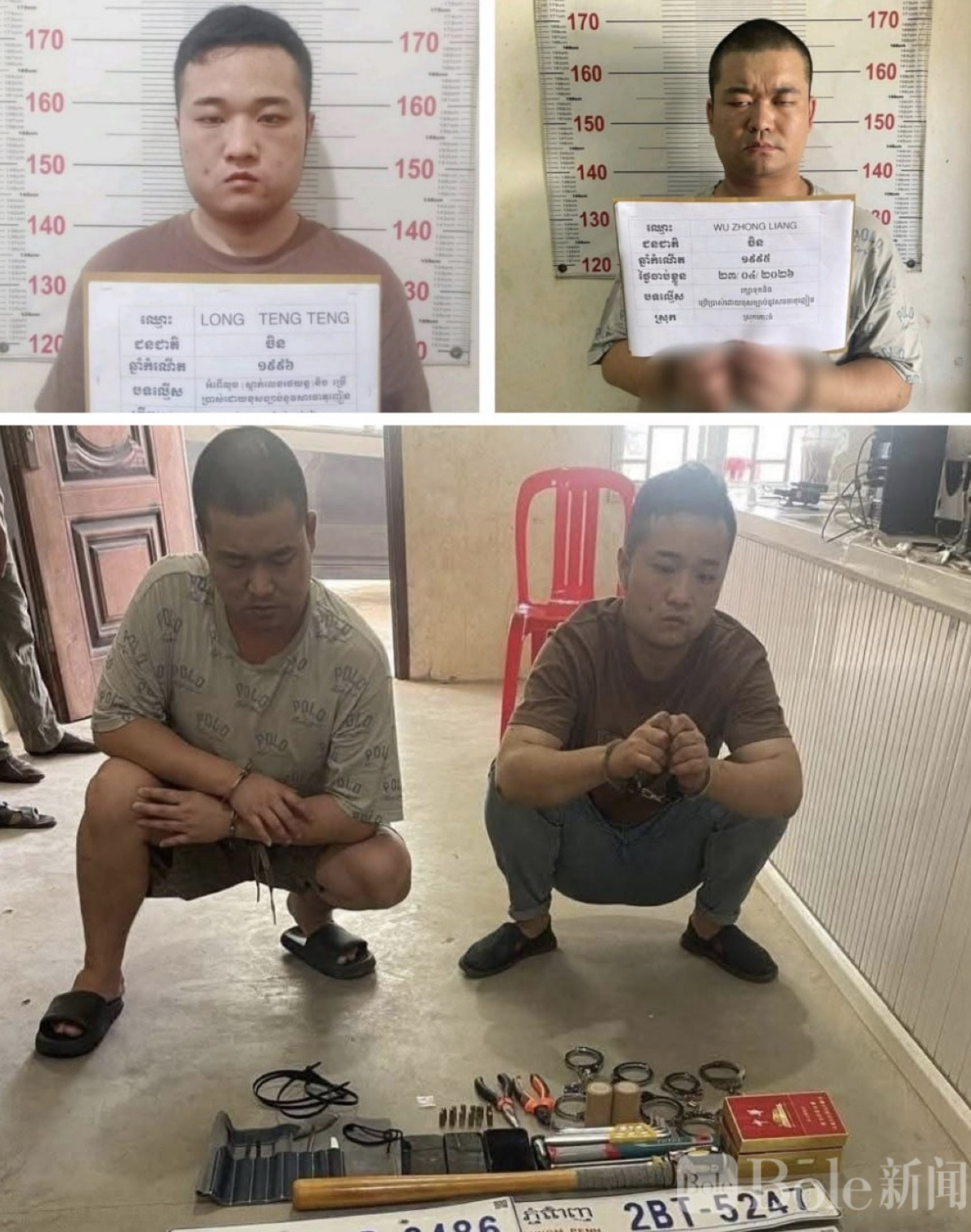 两名中国男子在柬埔寨医院偷车牌被抓!现场查出毒品与弹药