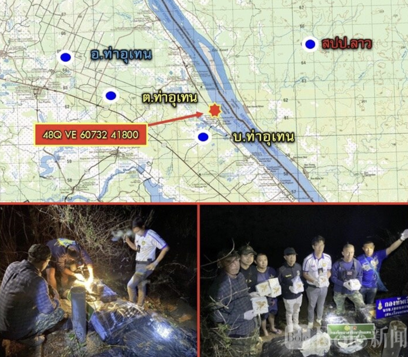 Bole新闻专讯:近日,泰国东北部与多部门联合展开一次跨区域禁毒行动,在湄公河岸成功截获一起大规模跨境贩毒案件,查获冰毒约五百公斤,嫌疑人两名在现场暴露后迅速逃回老挝方向,现场一度紧张但未发生交火。