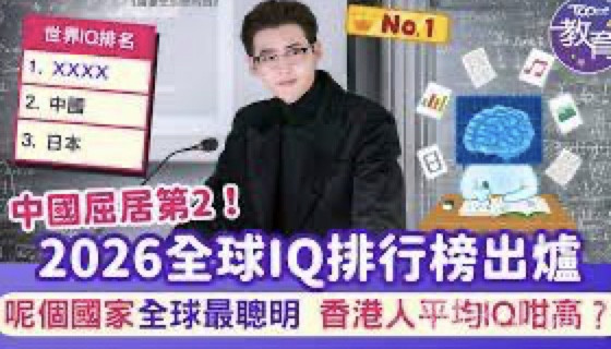 根据 International IQ Test 官网发布的2026年最新全球IQ排名榜单,韩国以106.97的平均分位居全球第一,中国以106.48排名第二,日本以106.30排名第三。