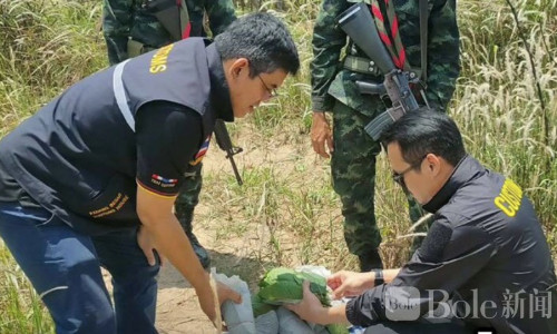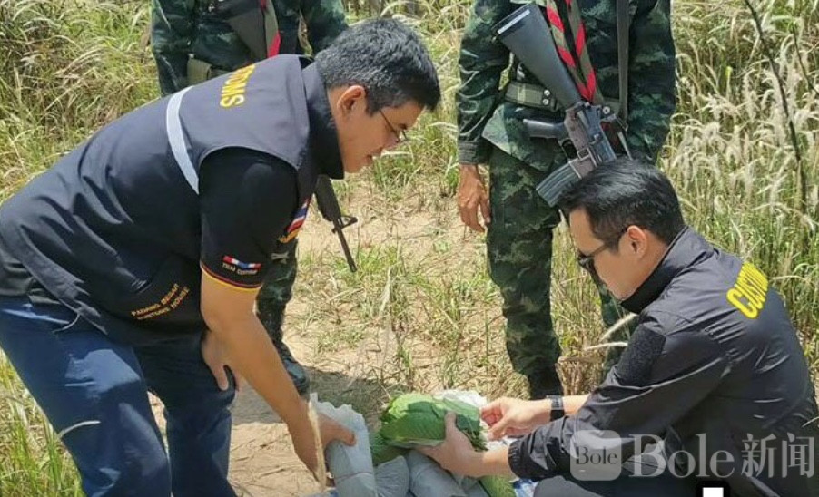 Bole新闻专讯:泰国军方、警方及海关在宋卡府泰马边境展开联合巡逻行动,成功查获5袋共计150公斤非法卡痛叶,疑似准备运往当地销售,涉案货物已被依法扣押并移交相关部门处理。
