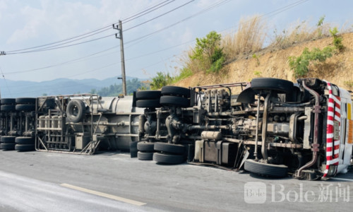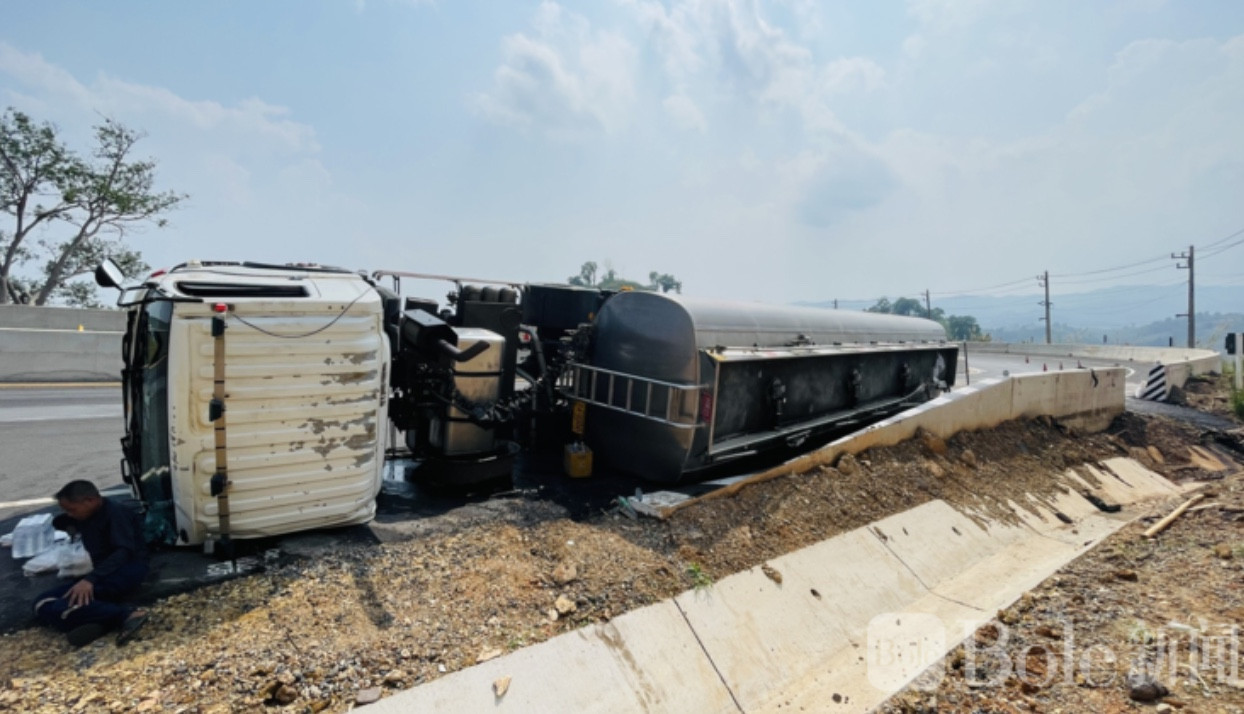 初步调查显示,发生事故的是一家石油公司的运输车辆,当时正载着燃油准备运往老挝。不料车辆在经过弯道时突然失控,拖挂车尾部出现摆动,紧接着整辆车侧翻在路边。事故导致部分燃油从油罐中泄出,估计泄漏量约5000升,占车上总油量4万升的一小部分。