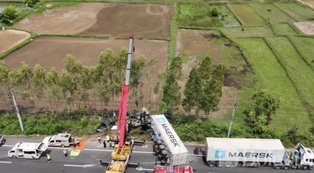 随后,当地救援力量联合邻近府份支援队伍展开联合救援,包括那空帕侬与穆达汉救援队,并由医院医疗团队现场协助监测伤者状况。救援人员动用两台大型吊车及破拆设备,经过长达7小时的紧张作业,最终成功将司机从车体中救出,并送医治疗。