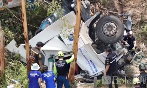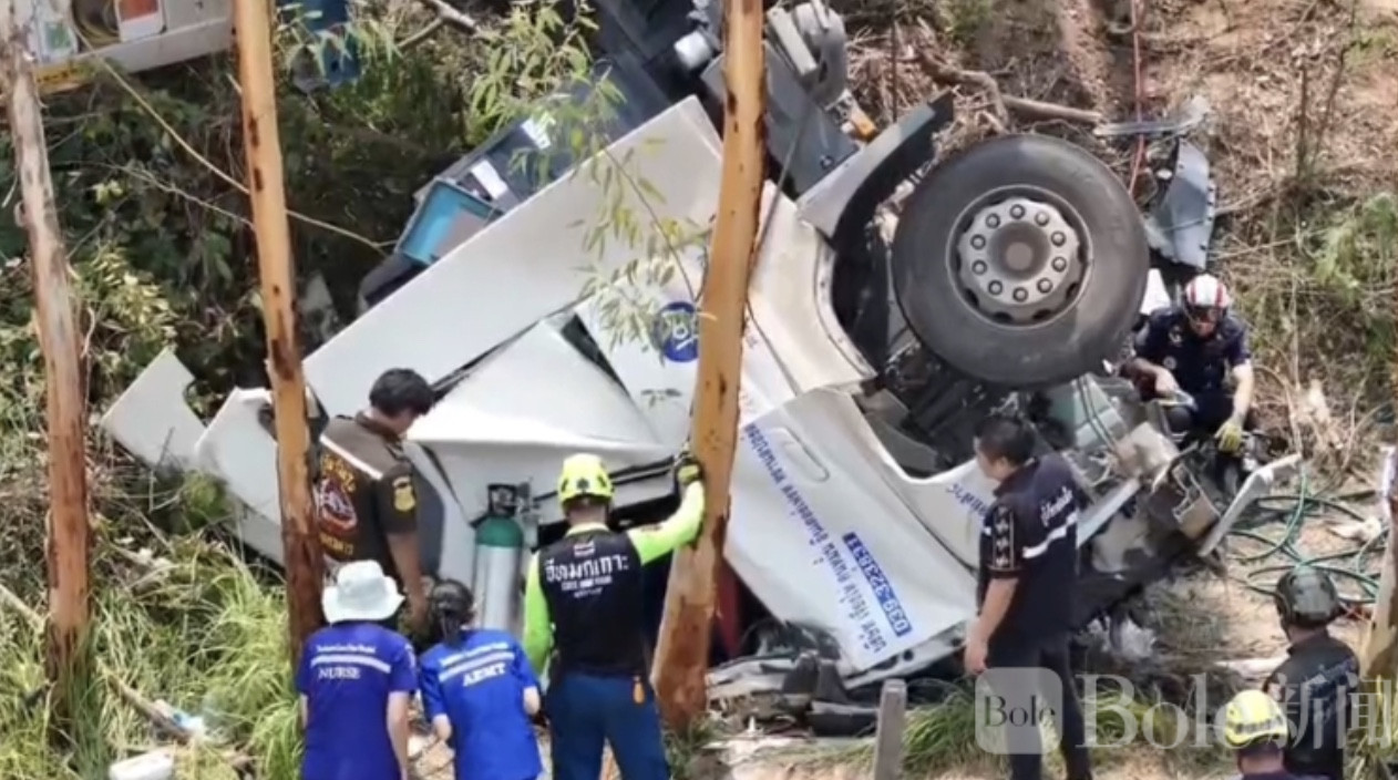 Bole新闻专讯:泰国东北部那空帕侬府他帕侬地区发生一起严重交通事故,一辆满载约40吨榴莲的货车在运输途中发生侧翻,导致司机被困车内长达7小时,最终在多方救援下成功获救。