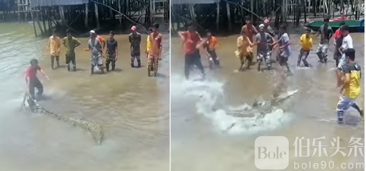 为了确保村庄的安全,渔民们联手捕捉了这只鳄鱼,并将其绑住,准备拖向海岸以交给当地相关部门。然而,在运输过程中,鳄鱼突然挣脱了绳索,追逐着附近的人群,最终重新游回大海。