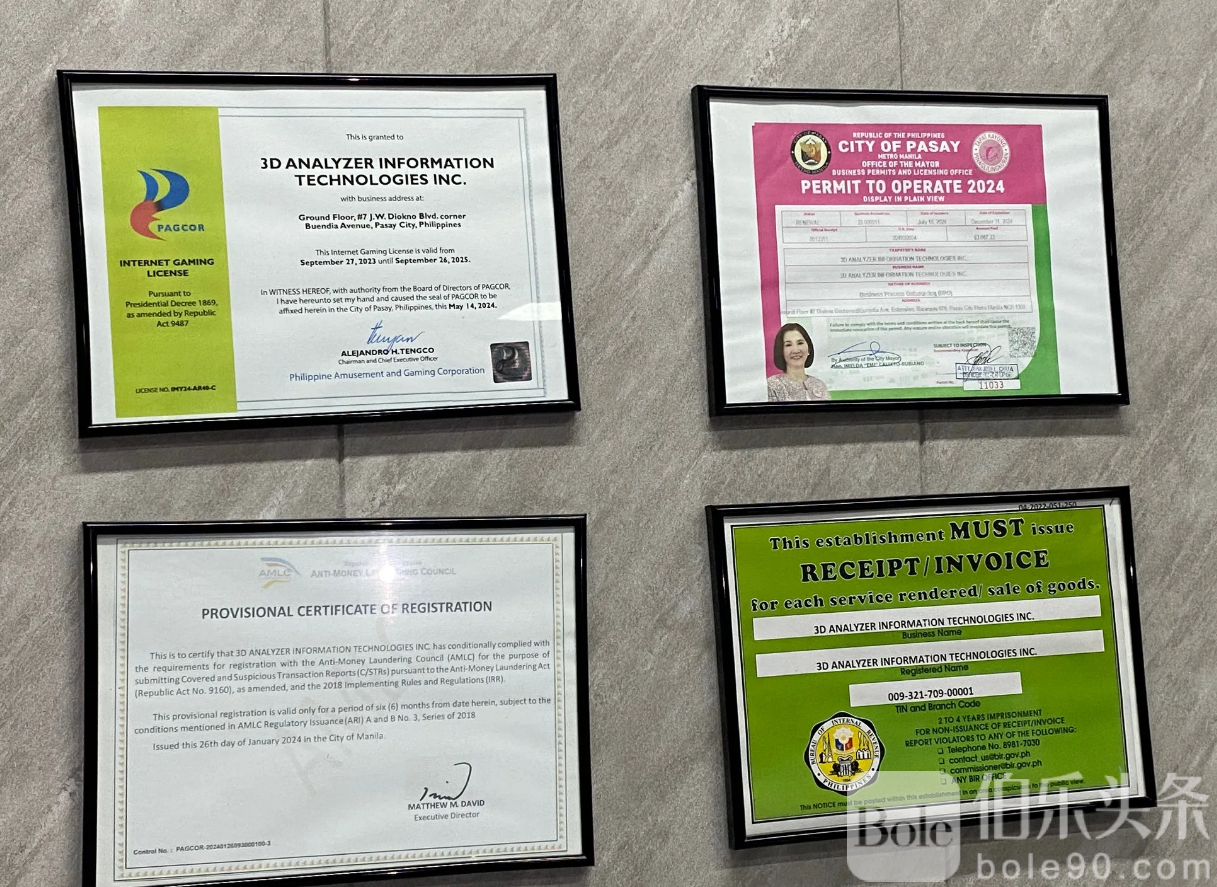 迷宫般的宿舍入口处挂着许可证:菲律宾娱乐和游戏公司 (Pagcor) 于 2023 年 9 月颁发的互联网游戏许可证 (IGL),有效期至 2025 年 9 月。