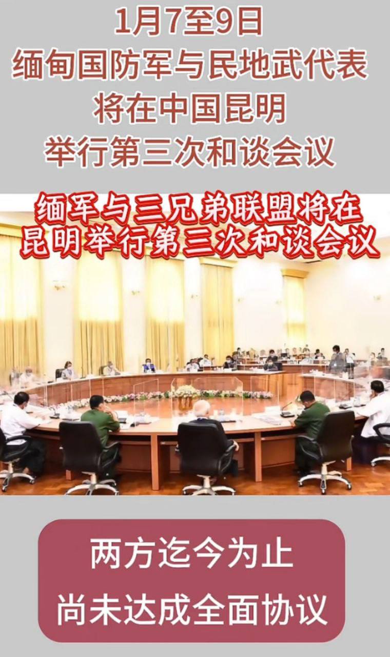 伯乐头条专讯:据缅甸媒体最新报道:1月7至9日缅军与民地武代表将在中国昆明举行第三次和谈会议。