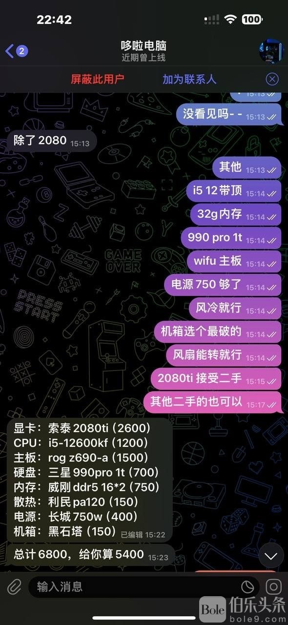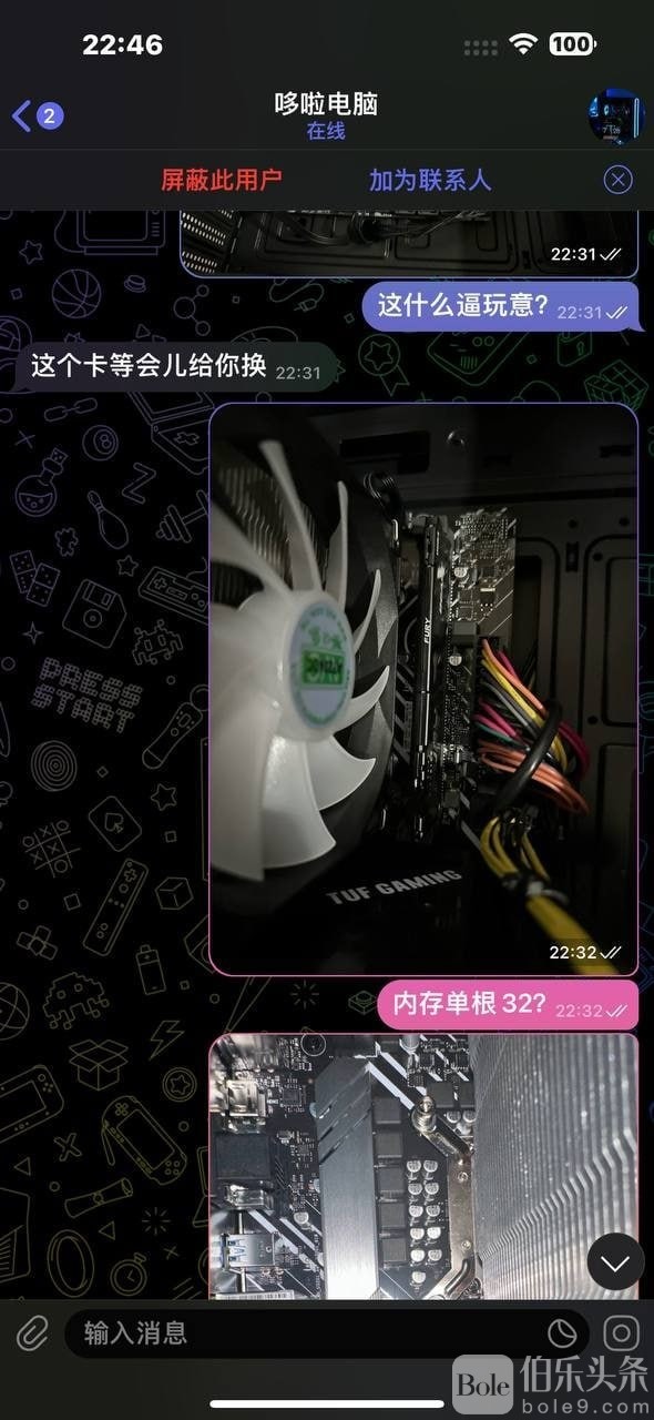 当他配好电脑,发来视频,我一眼看出问题,主板并不是z690a ,他说给我按了z790 ,看似型号高,其实没有z690a好,还说自己赔钱!结果拿来是b660? 我直接笑死,还请各位买任何东西不要先付钱,验货之后再给!如果付了款,肯定会跟你说拿回去给你重新配!最后结果就是连个毛都没有!
