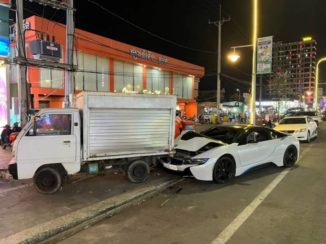 1月23日傍晚6点多,一名女子开着一辆白色的宝马跑车在西港独立大道上连撞多辆车子:1辆白色小轿车、1辆货车和1辆嘟嘟车。