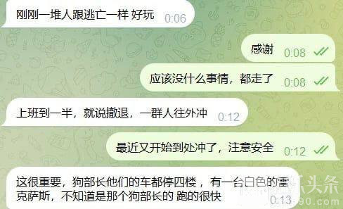 上班上到一半,狗推们就收到消息要撤退,赶紧一个个跑出大楼。网友形容现场氛围“就像逃亡一样”。