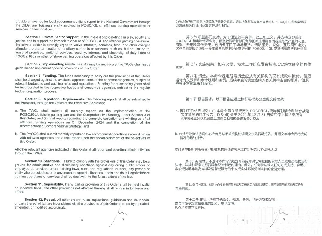 3.许可证续期:向POGO/IGL和其他离岸博彩运营商以及POGO、IGL和其他离岸博彩相关/辅助/附加服务颁发的所有现有许可证、许可或授权均不得再延期或延长。