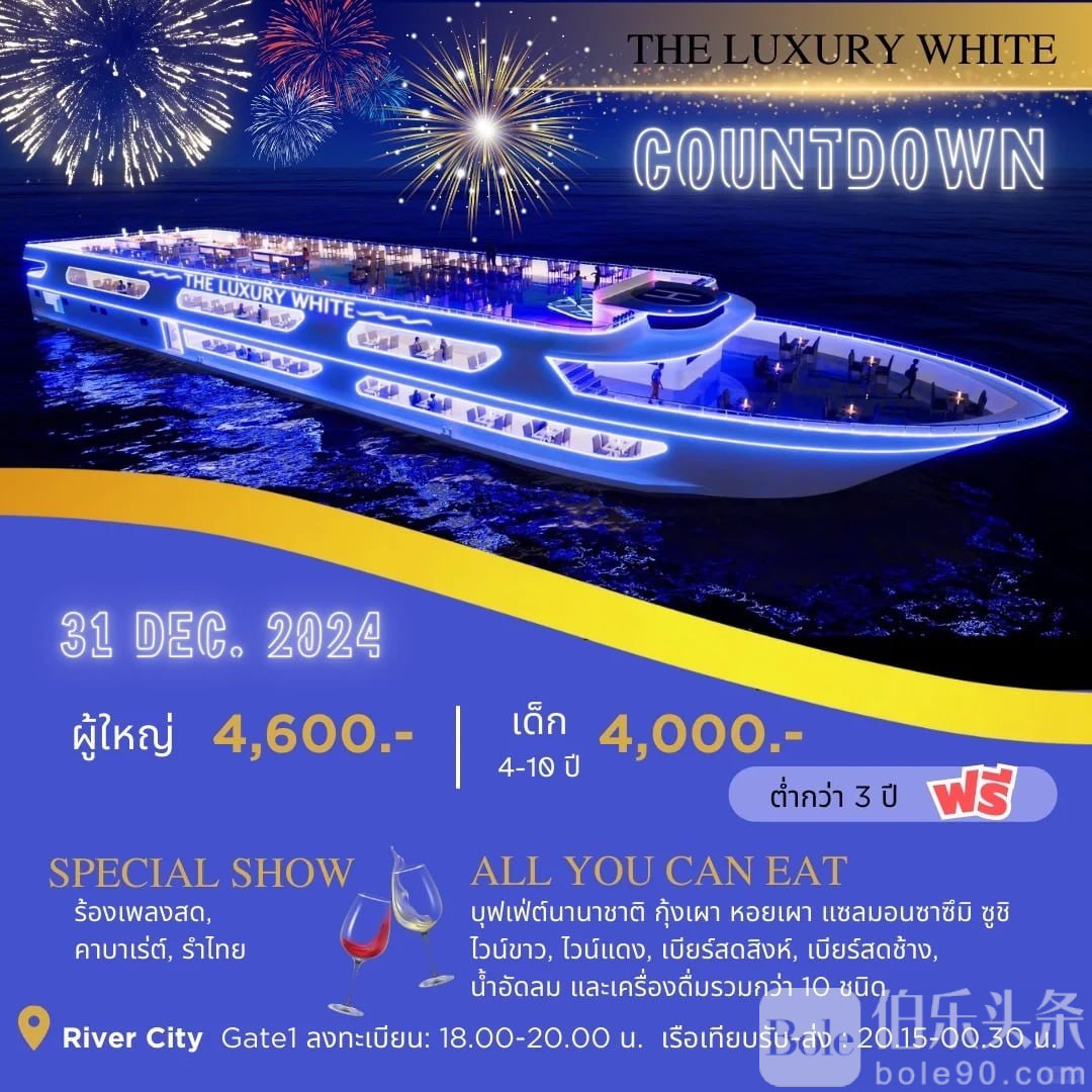 伯乐头条专讯:曼谷的湄南河每年都会有的跨年游船,璀璨明珠、富丽堂皇号opulence、皇家公主、皇家银河号和奢华白兰花号已经开始预定了,璀璨和富丽堂皇号甲板位没有了,仅剩室内位, 皇家公主、皇家银河号和奢华白兰花号目前还有甲板位置,先到先得。年终倒计时,一起度过元旦 新年🎆