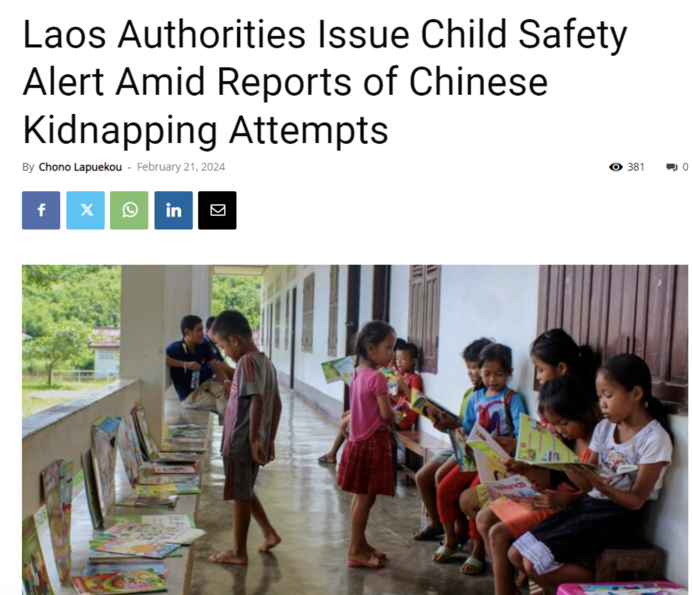 伯乐头条专讯:有老挝媒体报道称有中国人试图在老挝绑架儿童后,老挝对儿童安全的担忧日益加剧,促使地方当局发出警告,并敦促教师和家长保持警惕。