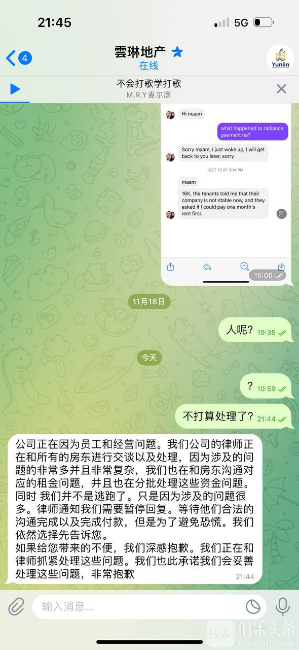 伯友爆料:雲琳地产中介跑路了!目前已经第6个人了