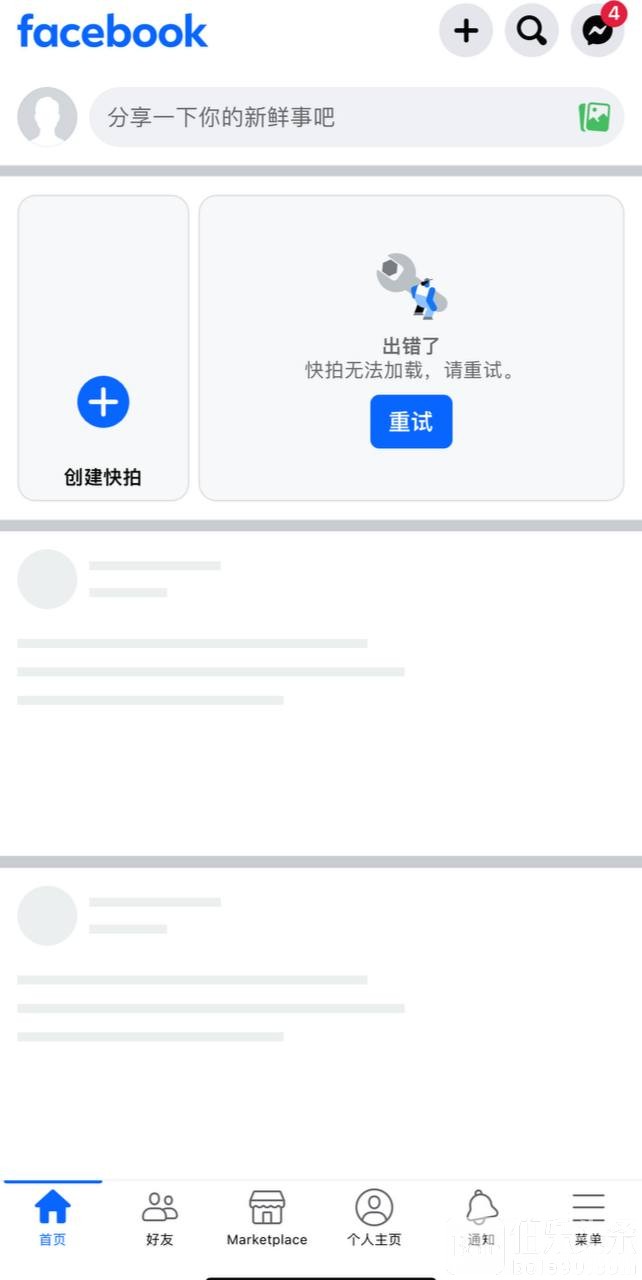 伯乐头条专讯:网友爆料,Facebook登入需要重新输入密码!再次登入就成功 但是显示:空白页面!出错 无法加载等提示字样