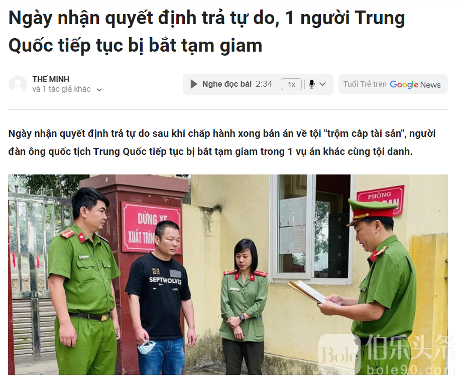 伯乐头条专讯:3月8日上午,越南富安省警方与司法局协调,逮捕了嫌疑人Huang LinZhong(48岁,中国湖南省人),以调查审理一起“盗窃财物”案,案件由富安省人民法院进行审理。