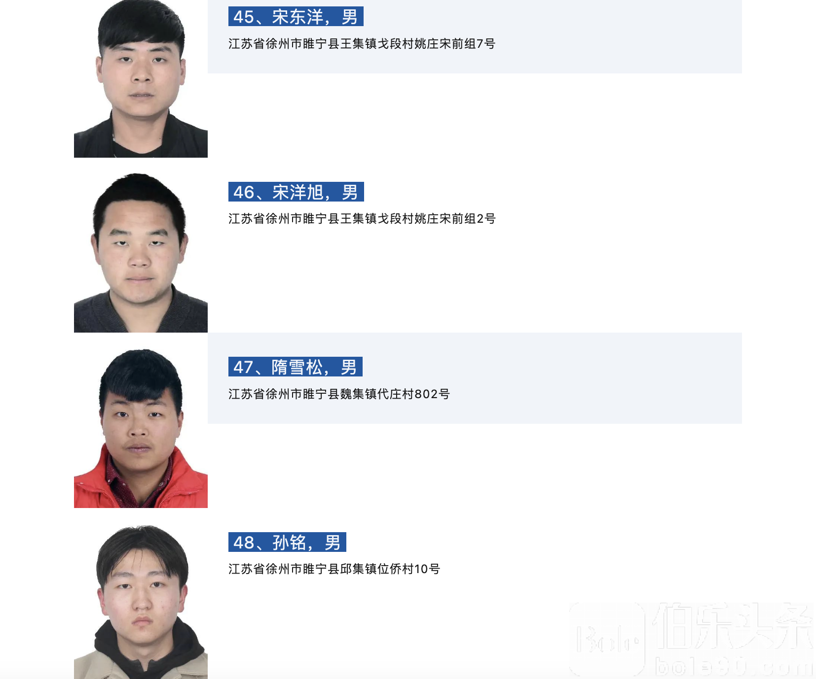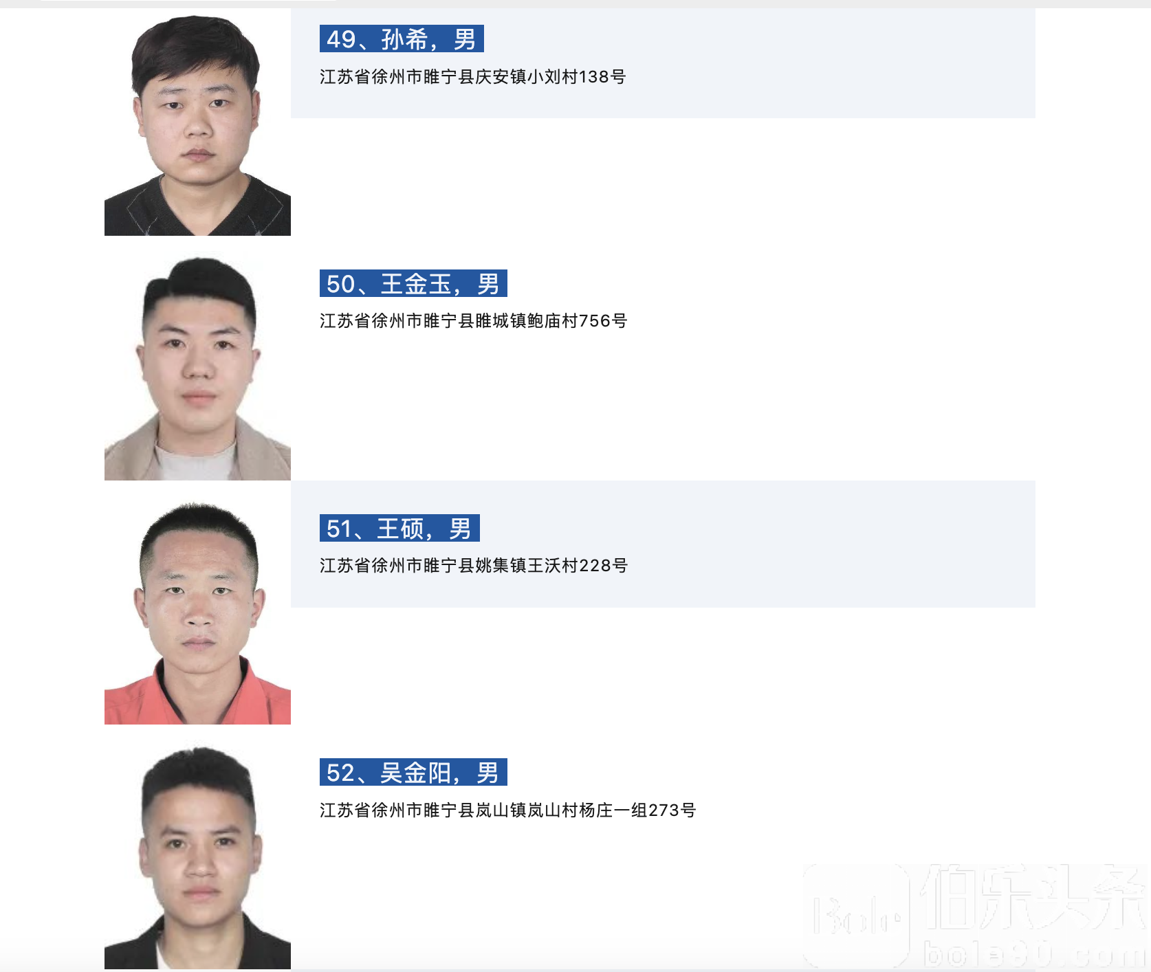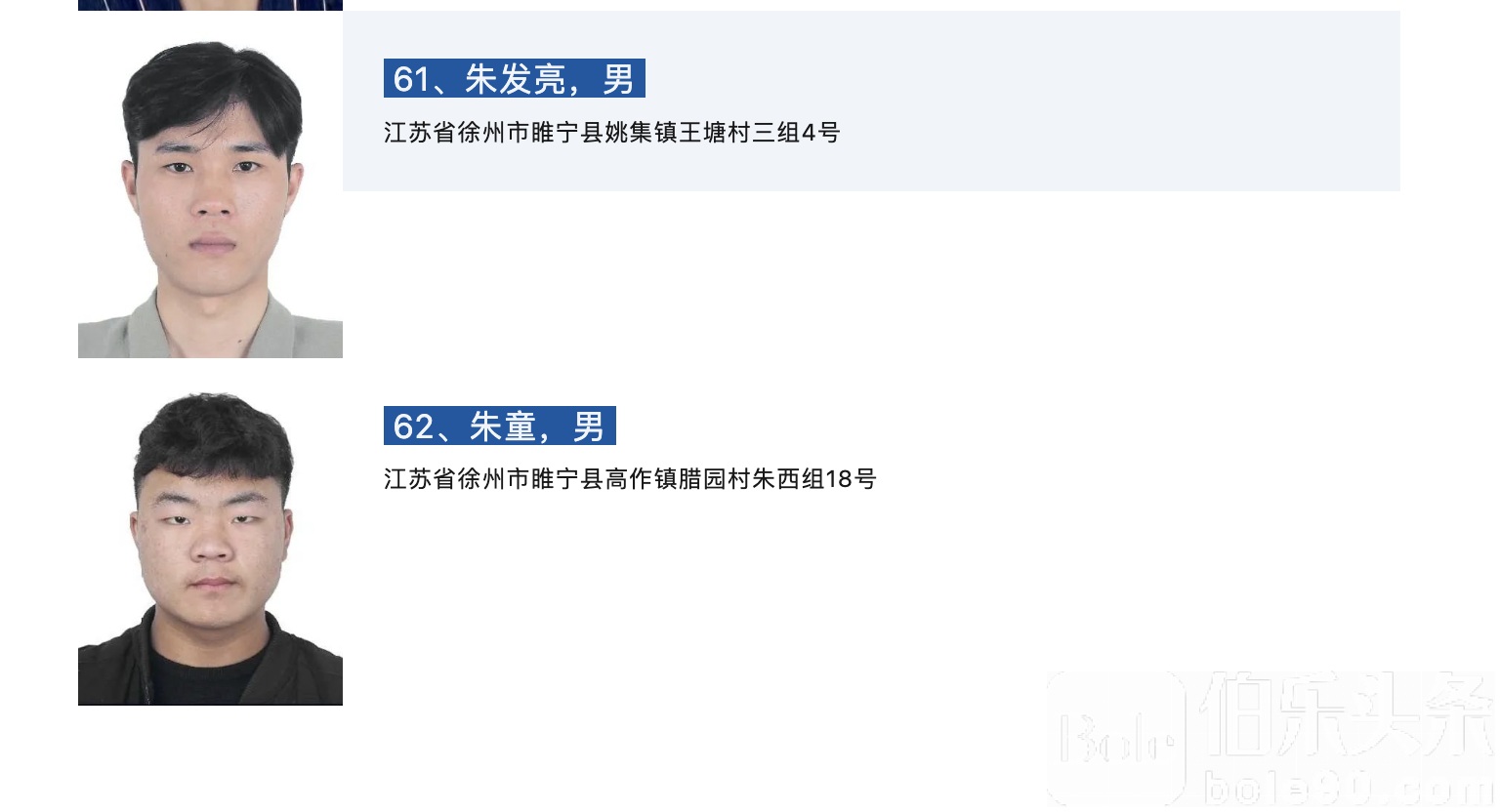 伯乐头条专讯:为坚决贯彻落实党中央关于打击治理电信网络诈骗犯罪的决策部署,同时为保障我市滞留境外人员的人身安全,徐州市打击治理电信网络新型违法犯罪工作联席会议办公室依据相关法律规定,对滞留缅北等地仍未回国的62名徐州籍人员依法公开劝返,现通告如下: