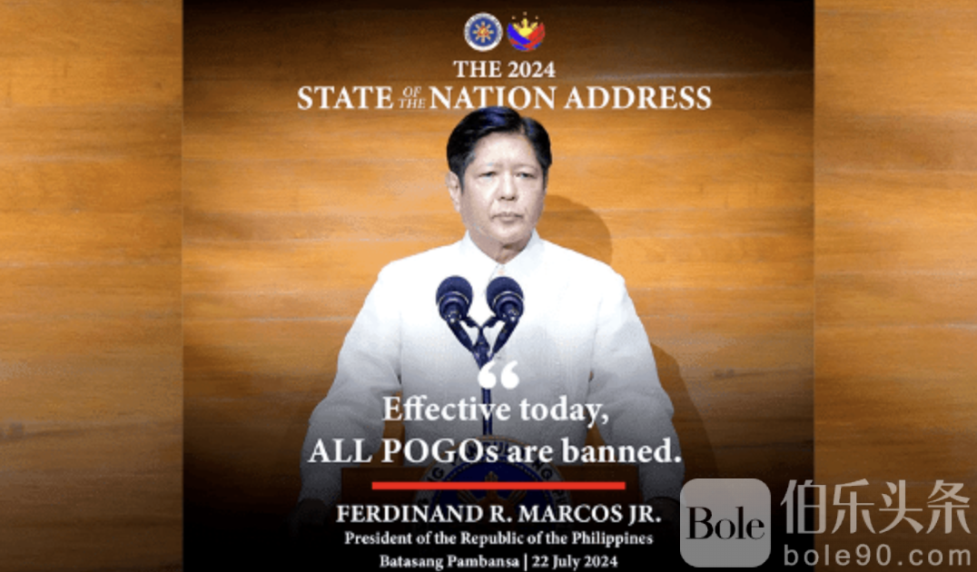 7月22日,马科斯总统宣布全面禁止菲律宾离岸博彩运营商(POGO),并要求相关业务在年底前全部终止。