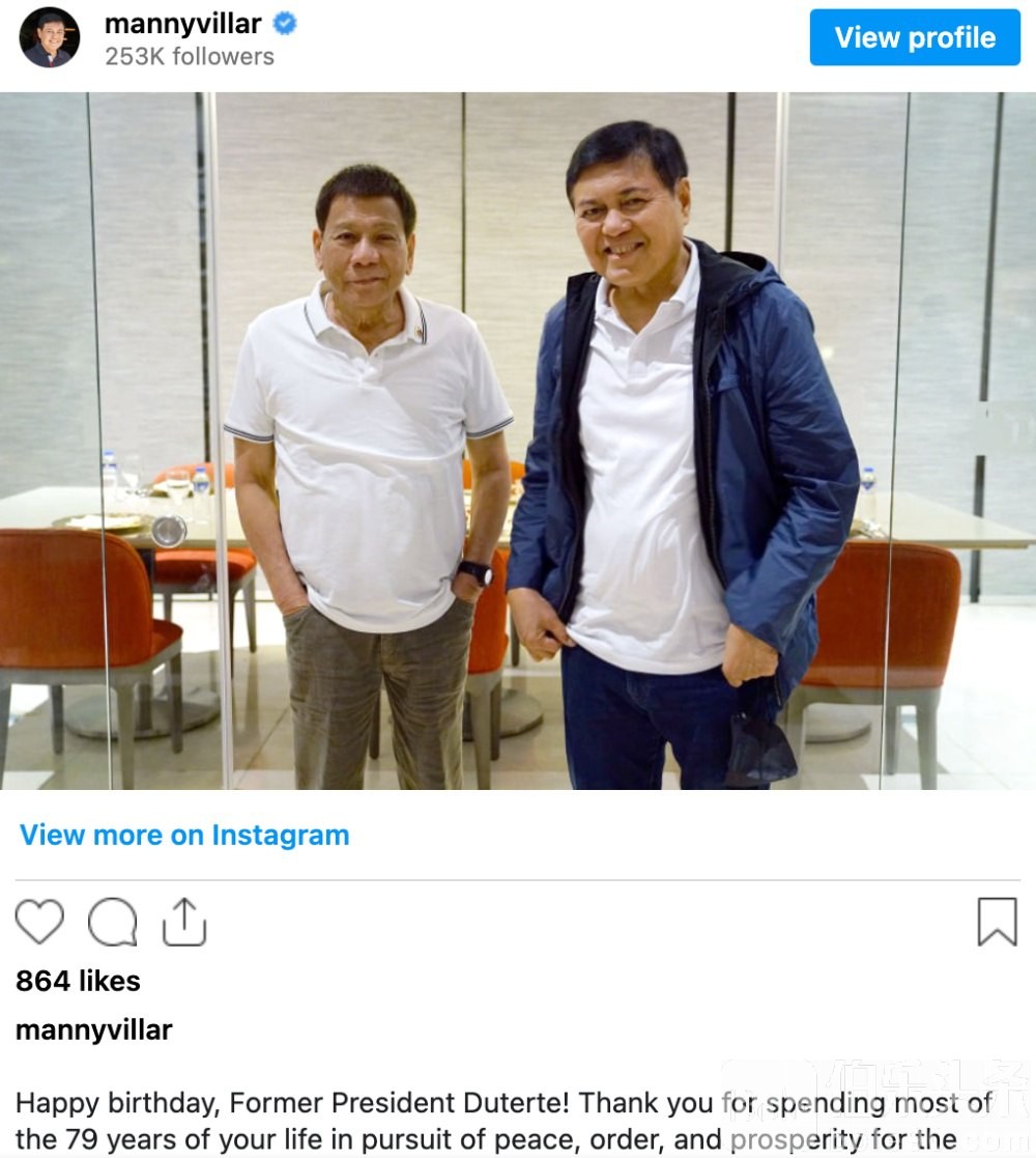 比利亚尔表示,前总统杜特地一生致力于为菲律宾人民服务,并对他79年来对“和平、秩序和繁荣”的奉献表示感谢。