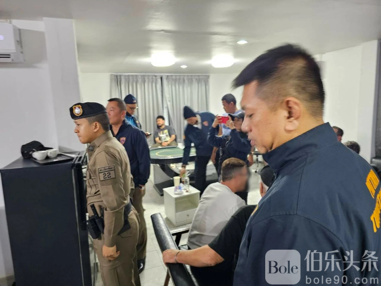 伯乐头条专讯:泰国国家移民局春武里府办事处负责人纳帕蓬带领20余名警力,对芭提雅市中天海滩区域一住宅进行突袭,成功捣毁了一个外国赌博团伙窝点。此次行动共逮捕了7名外国人和5名泰国人,其中包括美国、英国、俄罗斯和澳大利亚籍人员。
