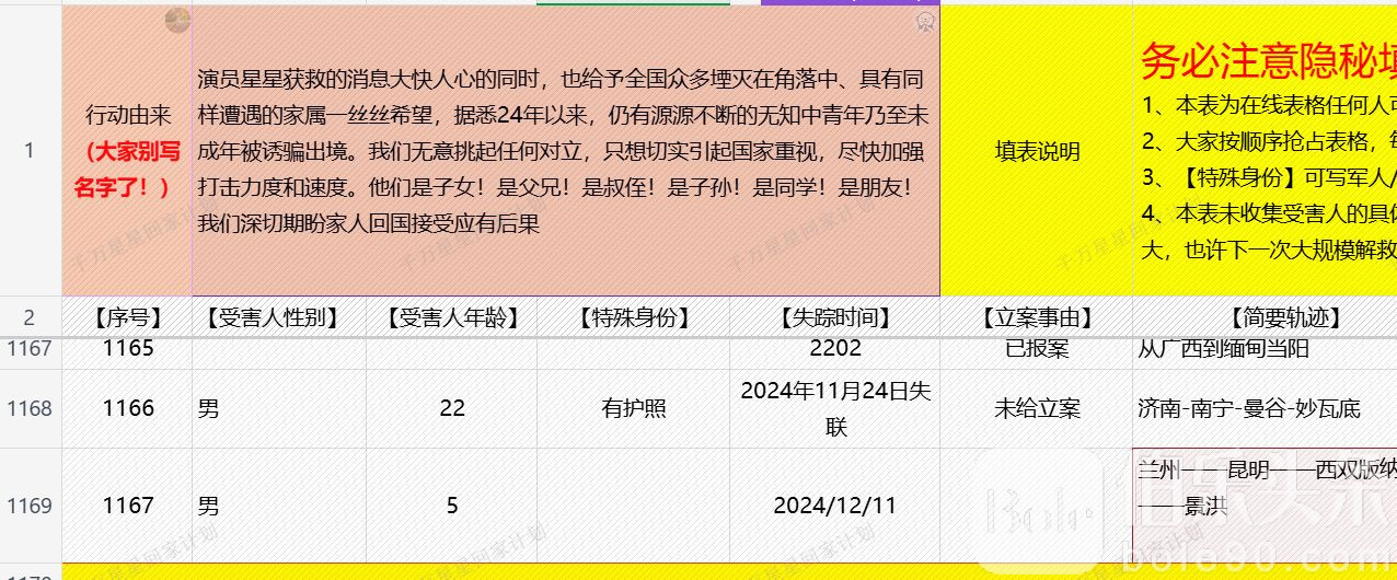 1月9日,微博用户 @稀薄20 发起了“星星回家计划”文档,旨在统计被困缅甸的受害者信息。这份文档一经公布便迅速传播。截至1月11日晚,文档中已经统计了超过1500名受害者的信息。