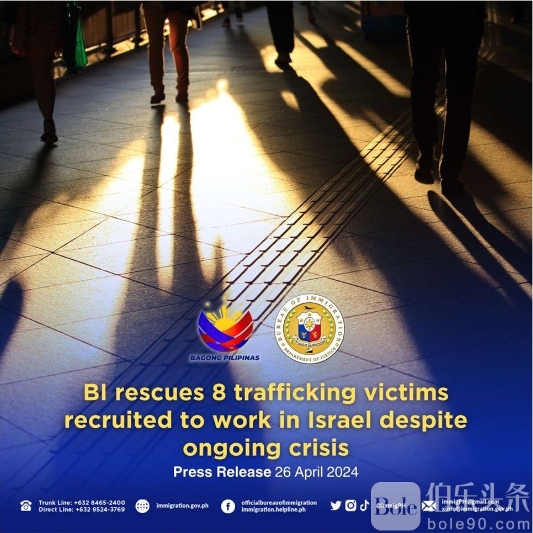 伯乐头条专讯:菲律宾移民局(BI)近日在克拉克国际机场(CIA)拦截八名疑似被招募到以色列工作的受害人。